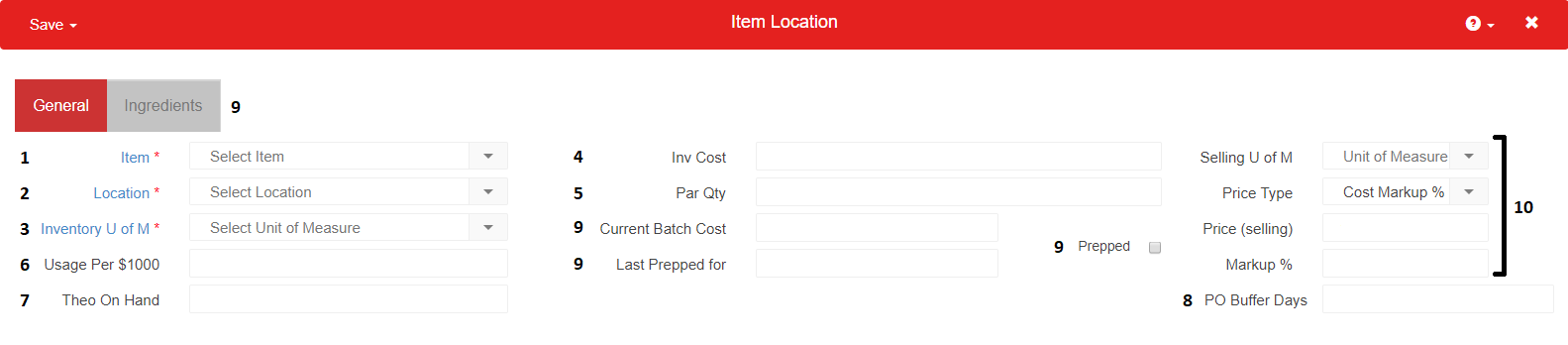 - PO Buffer Days: This value represents the number of extra days this item needs to be added to the Ordering suggestion during Purchase Order creation. An example would be an item that needs to thaw for a full day and then marinate for an additional day. The PO Buffer Days would be set to 2 days for this example