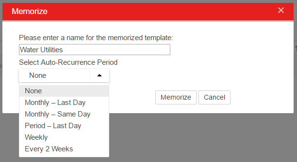 - Monthly Same Day - same day of the month as the date on the transaction we are currently memorizing