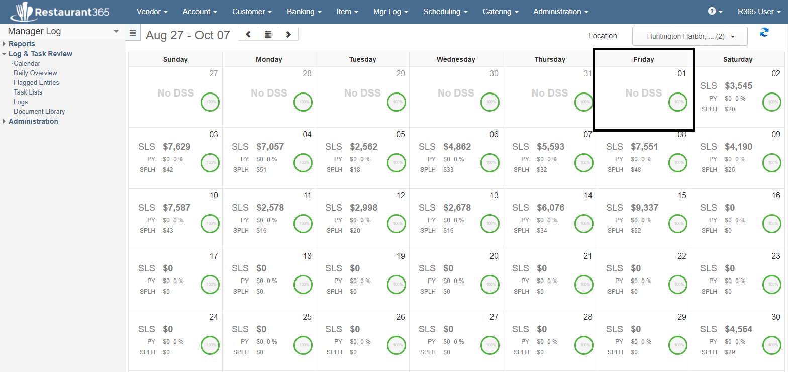 Before continuing, check the 'Missing DSS' tab to see if there are any missing DSSs for the date range selected. This tab, along with the Manager Log Calendar View, provides a quick check to ensure that no DSS is missed.